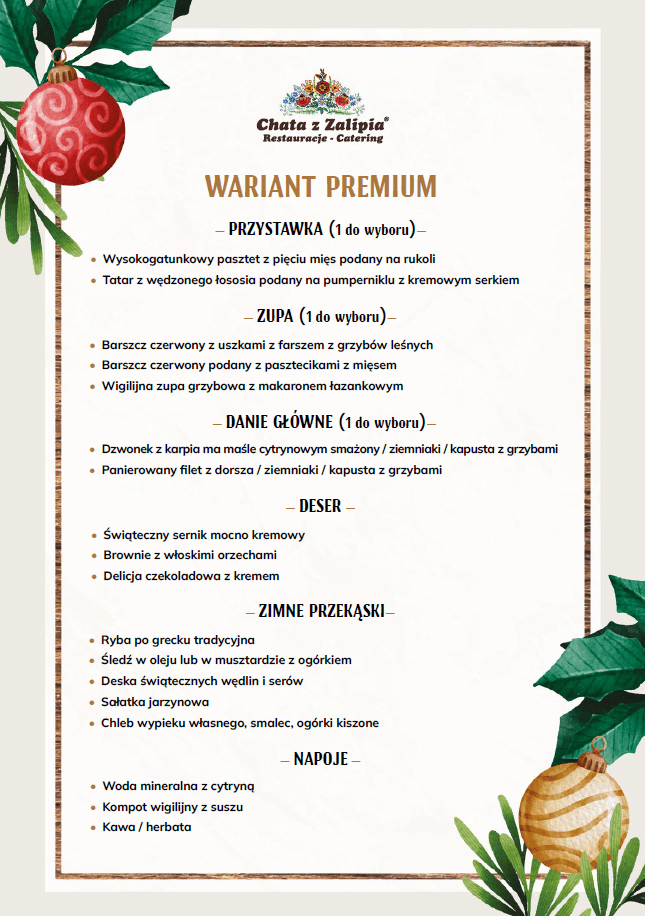 Wybór Chaty z Zalipia na miejsce organizacji wigilii firmowej to gwarancja niezapomnianych chwil spędzonych w wyjątkowej atmosferze. Restauracja ta słynie z doskonałej kuchni opartej na tradycyjnych polskich recepturach oraz autorskich wypiekach, które zachwycają nawet najbardziej wymagających smakoszy. Dodatkowo elegancki wystrój wnętrz oraz profesjonalna obsługa sprawiają, że każdy gość czuje się tutaj wyjątkowo.
